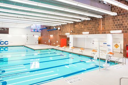 Stalco performed extensive repairs and interior renovations to the Borough of Manhattan Community College’s (BMCC) aquatics center. The facility features a 220,000-gallon, 4,575-sq. ft. pool with deep and shallow sections; a swimming competition area with digital timing devices; an office; a large deck; bleachers; and a storage room.