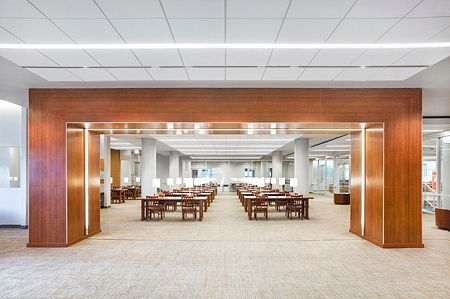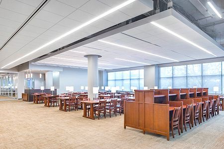 Stalco expanded the formerly one-story-plus-mezzanine library, making it nearly 60 percent larger. The students now have additional 312 workstations with powered Internet connections as well as new media and study rooms.